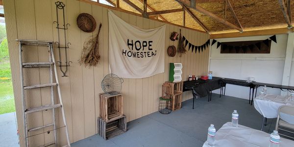 The Pavilion, at Hope Homestead General Store is a charming, outdoor space available for classes, workshops, and paid community events. We offer a peaceful, welcoming environment and we are excited to partner with local vendors and instructors to create engaging community experiences.